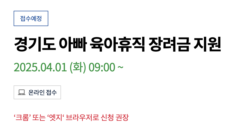 이때 경기도 아빠 육아휴직 장려금이 매월 30만 원씩 5개월 동안 지급되면서 경제적 부담을 조금이나마 덜 수 있어요.